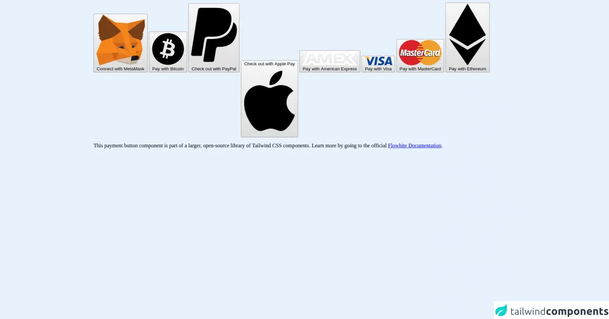 Published onAugust 2, 2022How To Make A Payment Buttons With Tailwind CSS In 6 Easy Steps?ButtonsThis is a complete guide to how to use Tailwind CSS to make Payment buttons component.