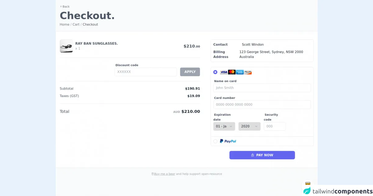 Published onJune 17, 2022Practical Guide: Create A Checkout Page With Tailwind CSSFormsPagesWidgetThis is a complete guide to how to use Tailwind CSS to make Checkout Page component.