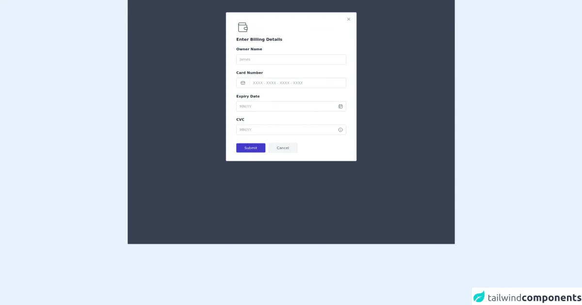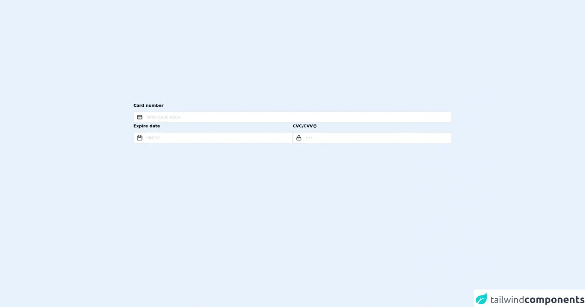 Published onJune 22, 2022Advanced Guide: Create A Credit Card Form With Tailwind CSSFormsInputsThis is a complete guide to how to use Tailwind CSS to make Credit card form component.