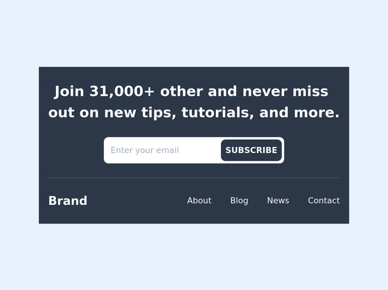 Published onJuly 4, 20226 Easy Ways To Build A Footer With Newsletter With Tailwind CSS Without Even Thinking About ItFormsThis is a complete guide to how to use Tailwind CSS to make Footer with Newsletter component.