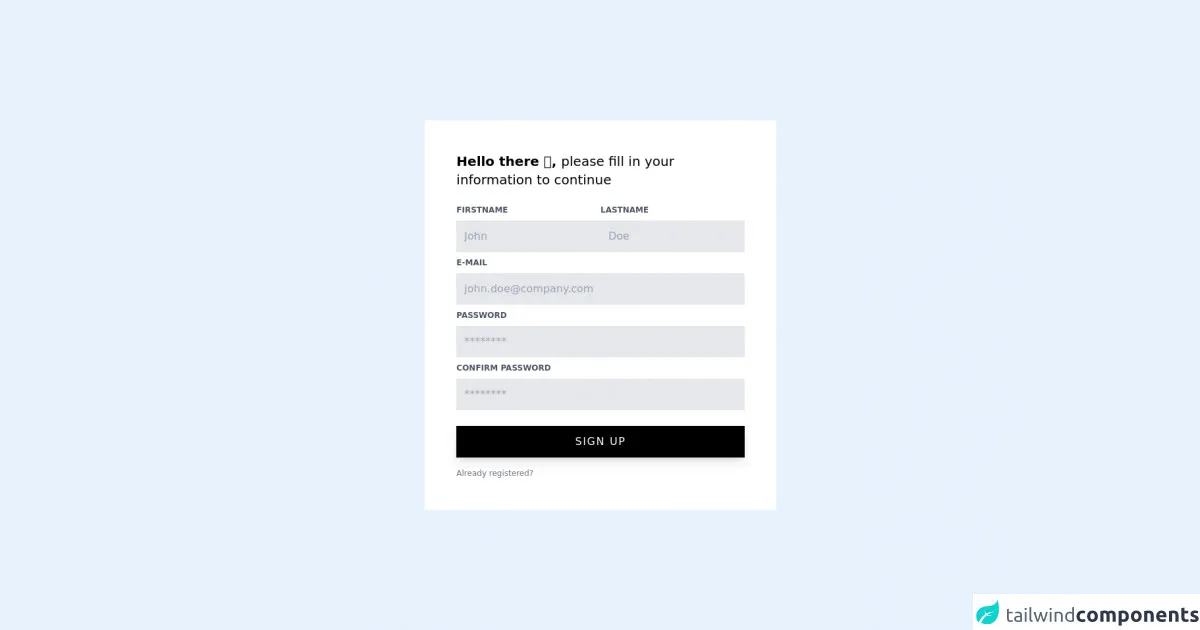 Published onSeptember 2, 2022Most Effective Ways To Build A Sign Up Form With Tailwind CSSFormsThis is a complete guide to how to use Tailwind CSS to make Sign Up Form component.