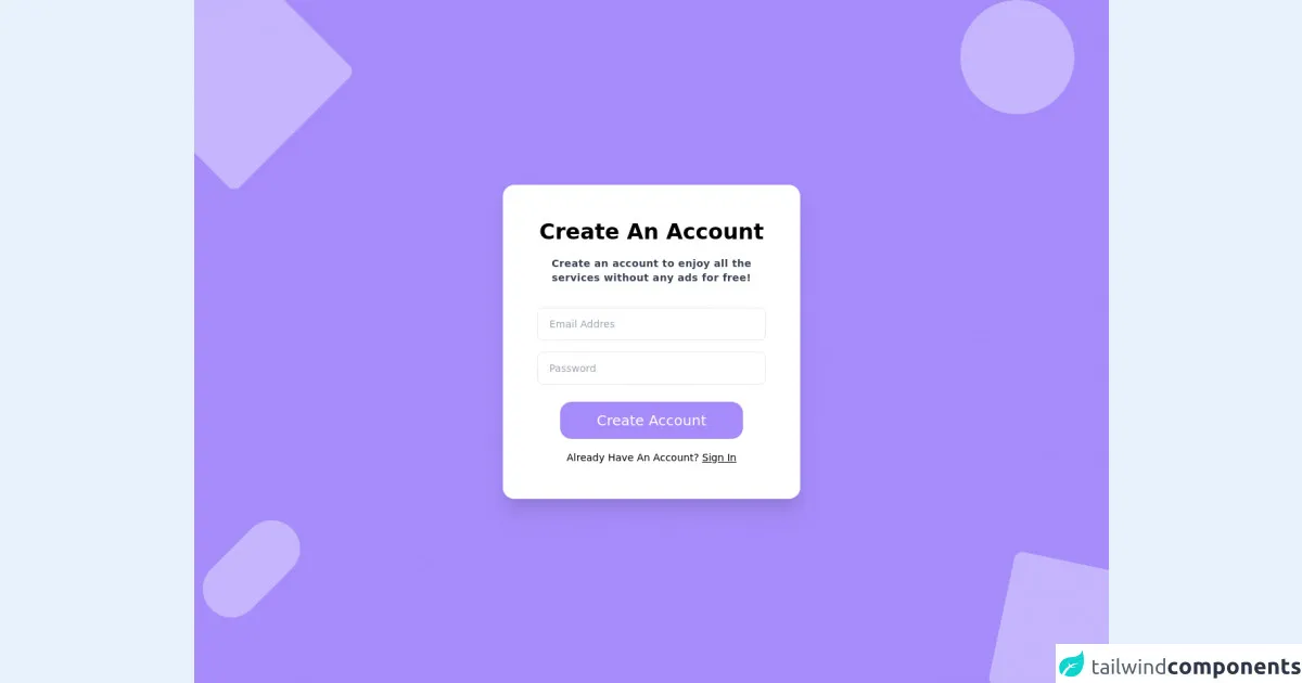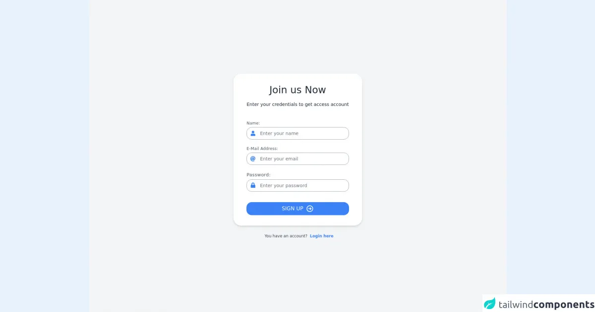 Published onSeptember 7, 20226 Incredibly Easy Ways To Create A Simple Register/Sign Up Form With Tailwind CSS Better While Spending LessFormsInputsLoginsWidgetThis is a complete guide to how to use Tailwind CSS to make Simple Register/Sign Up Form component.