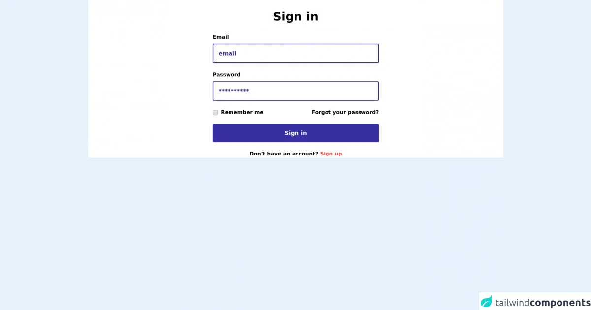 Published onSeptember 2, 2022How To Create A Sign in form With Tailwind CSS From ScratchFormsThis is a complete guide to how to use Tailwind CSS to make Sign in form component.