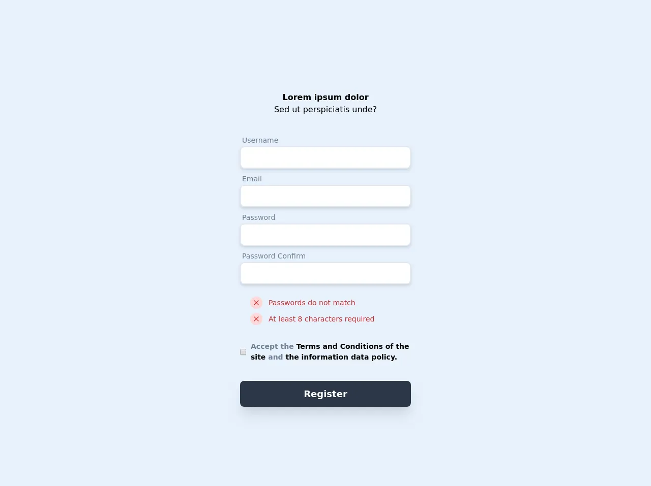 Published onSeptember 6, 2022Advanced Guide: Build A Simple Register Page With Tailwind CSSButtonsFormsLoginsThis is a complete guide to how to use Tailwind CSS to make Simple Register Page component.
