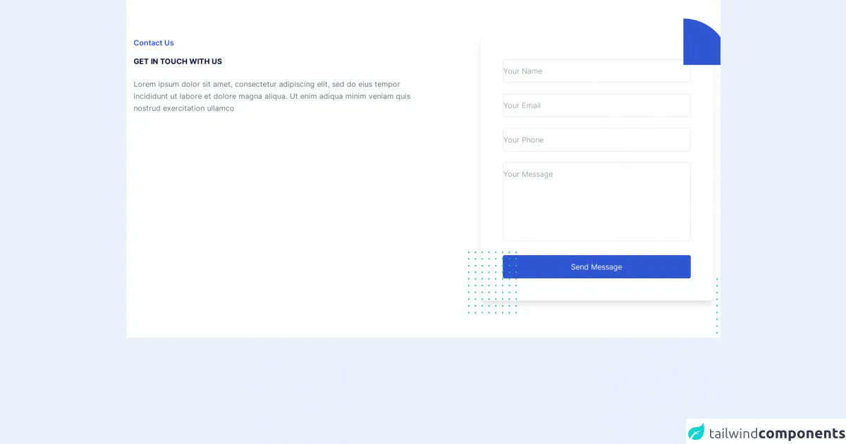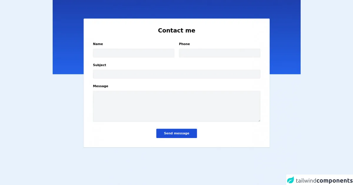 Published onJune 21, 2022How to Build A Contact Form With Tailwind CSS?FormsThis is a complete guide to how to use Tailwind CSS to make Contact form component.