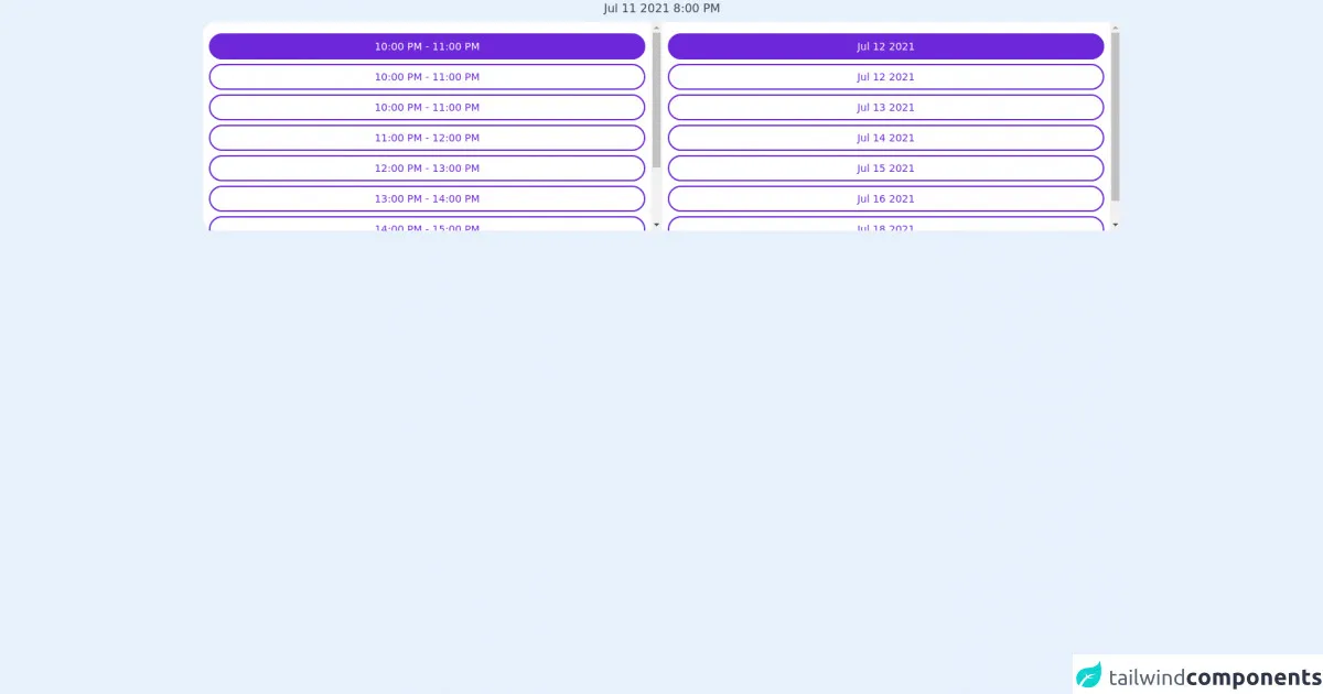 Published onJune 24, 2022Learn How To Create A Datetime Range Picker With Tailwind CSS from the ProsFormsInputsThis is a complete guide to how to use Tailwind CSS to make Datetime Range Picker component.