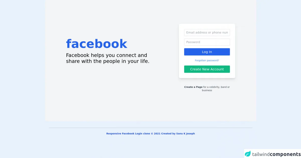Published onJune 28, 20223 Things You Must Know To Create A Facebook Login Page With Tailwind CSSFormsLoginsPagesThis is a complete guide to how to use Tailwind CSS to make Facebook Login Page component.