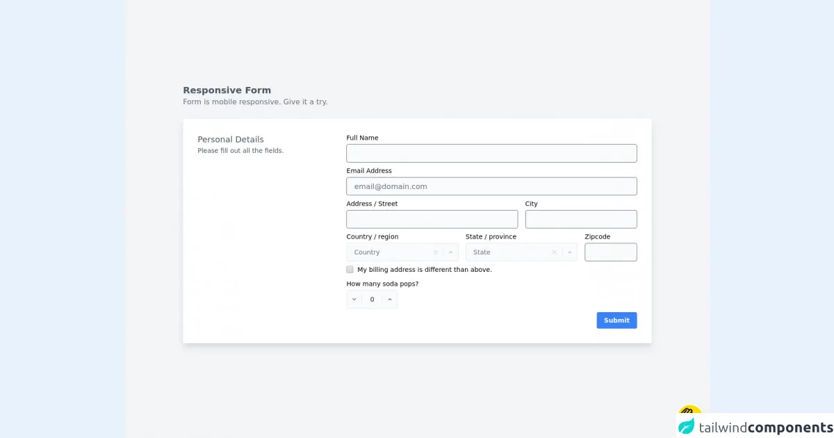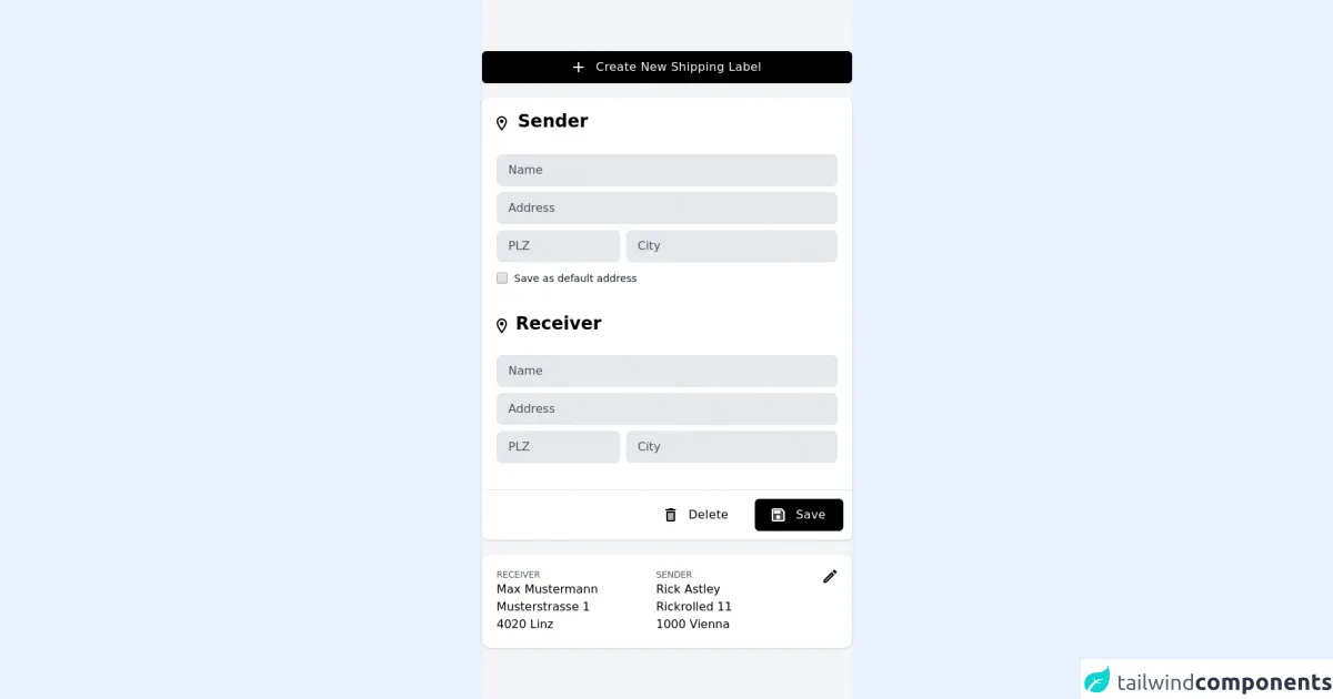 Published onSeptember 2, 2022Ultimate Guide: Build A Shipping Label Address Form With Tailwind CSSFormsInputsThis is a complete guide to how to use Tailwind CSS to make Shipping Label Address Form component.