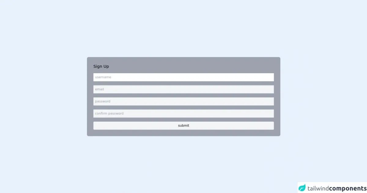 Published onSeptember 2, 2022Beginners Guide: Make A Sign Up Form With Tailwind CSSFormsThis is a complete guide to how to use Tailwind CSS to make Sign Up Form component.