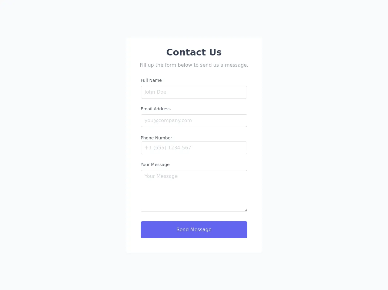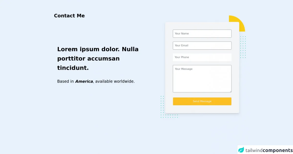 Published onOctober 31, 2022Learn How To Create A Working Contact Form (send email without Backend server) With Tailwind CSS Like an ExpertFormsThis is a complete guide to how to use Tailwind CSS to make Working Contact Form (send email without Backend server) component.