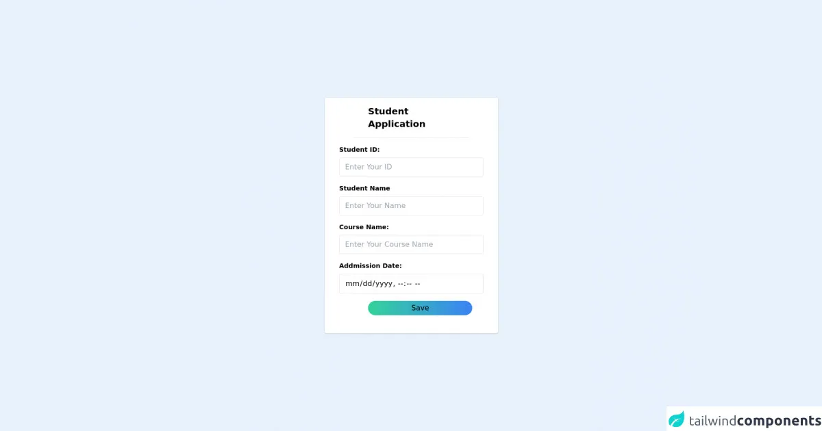 Published onSeptember 15, 2022Advanced Guide: Create A Student Form With Tailwind CSSFormsThis is a complete guide to how to use Tailwind CSS to make Student Form component.