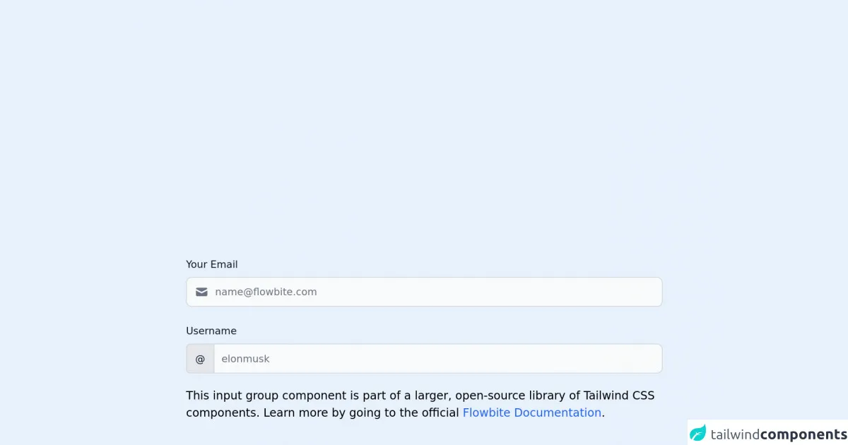 Published onJuly 15, 20226 Steps To Build A Input Group Add Ons With Tailwind CSS Like A Pro In Under An HourFormsInputsThis is a complete guide to how to use Tailwind CSS to make Input Group Add Ons component.