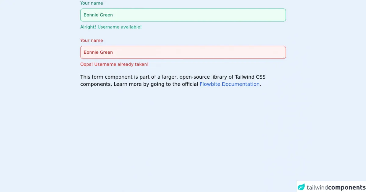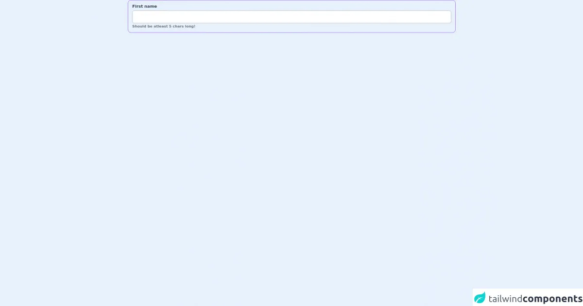 Published onJuly 15, 20226 Steps To Create A Inline Form With Validation With Tailwind CSS Like A Pro In Under An HourInputsThis is a complete guide to how to use Tailwind CSS to make Inline Form with Validation component.