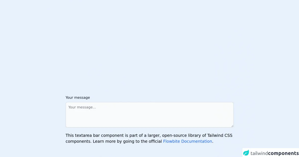 Published onOctober 18, 2022Best Ways To Build A Textarea With Tailwind CSSInputsThis is a complete guide to how to use Tailwind CSS to make Textarea component.