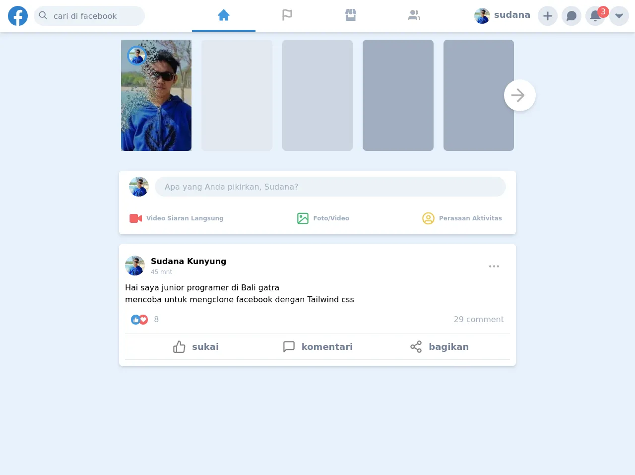 Published onJune 29, 2022Beginners Guide: Create A Facebook Clone With Tailwind CSSNavigationsThis is a complete guide to how to use Tailwind CSS to make Facebook clone component.