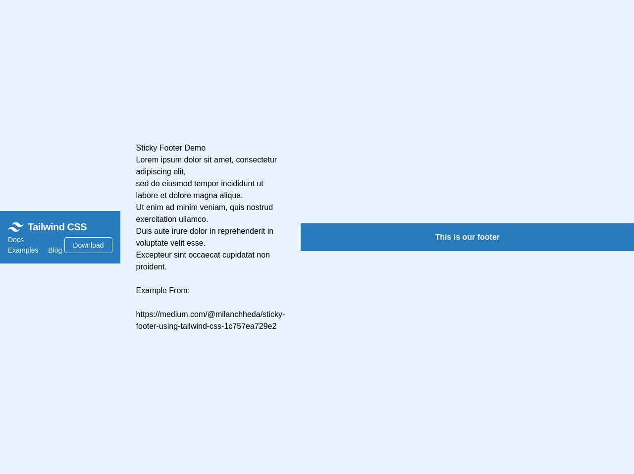 Published onSeptember 14, 20226 Steps To Build A Sticky Footer and responsive menu With Tailwind CSS Like A Pro In Under An HourNavigationsThis is a complete guide to how to use Tailwind CSS to make Sticky Footer and responsive menu component.